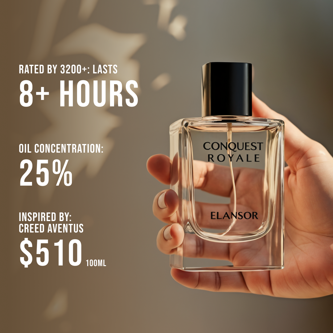 Step into the commanding presence of Conquest Royale, an unforgettable fragrance in a 100ml bottle.